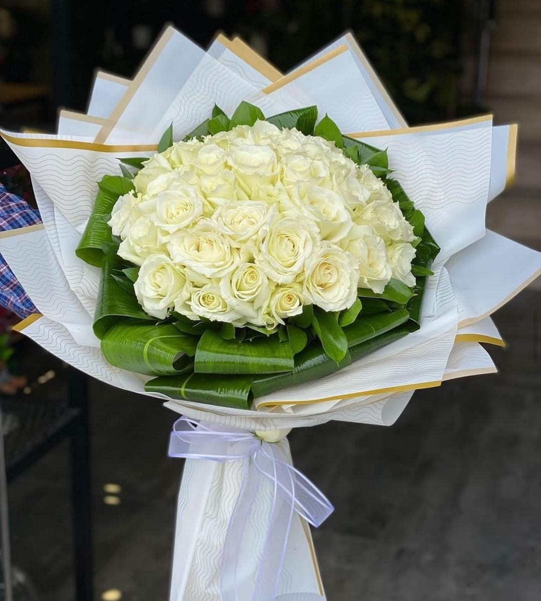 Görselde yer alan bu göz kamaştırıcı beyaz gül buketi, sevgi dolu bir mesajı sade ama etkileyici bir şekilde iletmenin en zarif yoludur.