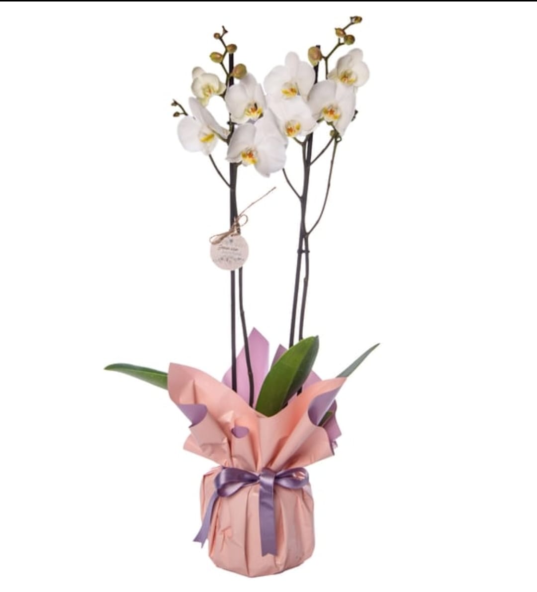 Hem ev hem de ofis ortamına zarif bir hava katan beyaz orkide; sevgililer günü, yıldönümü, doğum günü veya kurumsal kutlamalar için mükemmel bir seçimdir.
