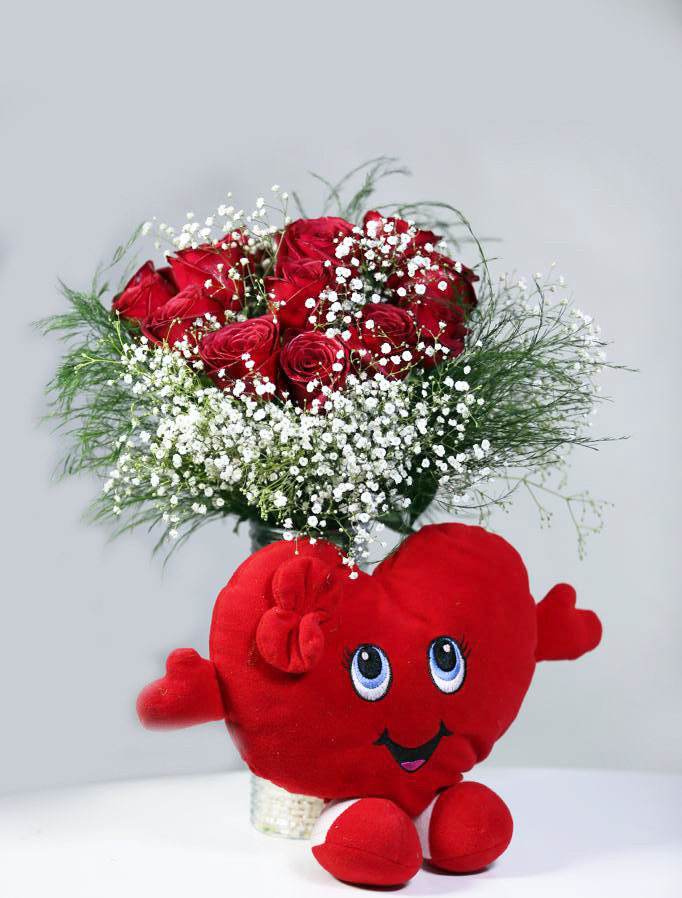 Her anında yanında olamadığınız sevgilinizi sizin yerinize kucaklayabilecek bu sevimli kalp peluş ile hazırladığımız gülleri ciceksurprizi.com ile gönder. 11 adet kırmızı gül ile çiçek siparişi.