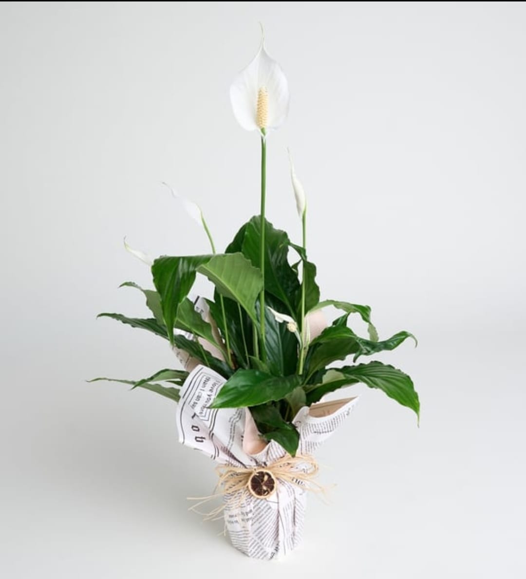 Bu muhteşem bitki, Urfa Edalı Çiçek’in özenli hazırlığıyla şık gazete kağıdı ambalajı içinde sunuluyor. Kurutulmuş narenciye dilimi ile tamamlanan tasarımı, doğal ve zarif bir görünüm kazandırıyor. Barış çiçeği, ortamın havasını temizleme özelliğiyle evinizin ferahlığını artırırken, bakımı kolay olduğu için herkesin rahatlıkla yetiştirebileceği ideal bir bitkidir.