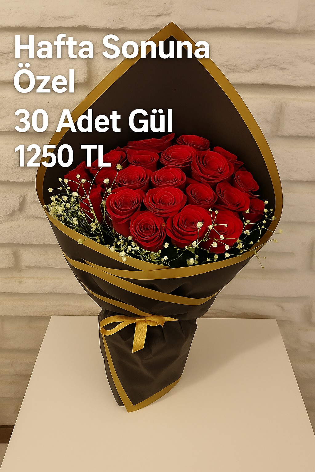 Bu hafta sonuna özel, sevdiklerinizi 30 adet taze kırmızı gülden oluşan şık buketimizle mutlu edin.