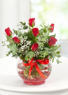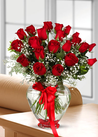 Kalp Vazoda 21 Adet Kırmızı Gül