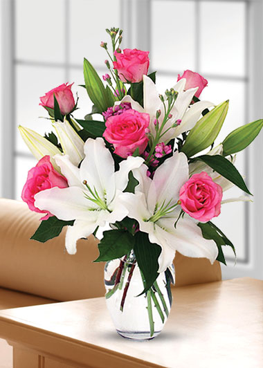 5 adet pembe gülBeyaz lilyumlar