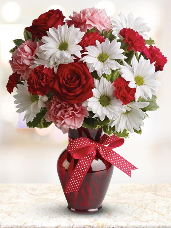 Vazoda Papatya Gül Ve Karanfil Aranjmanı