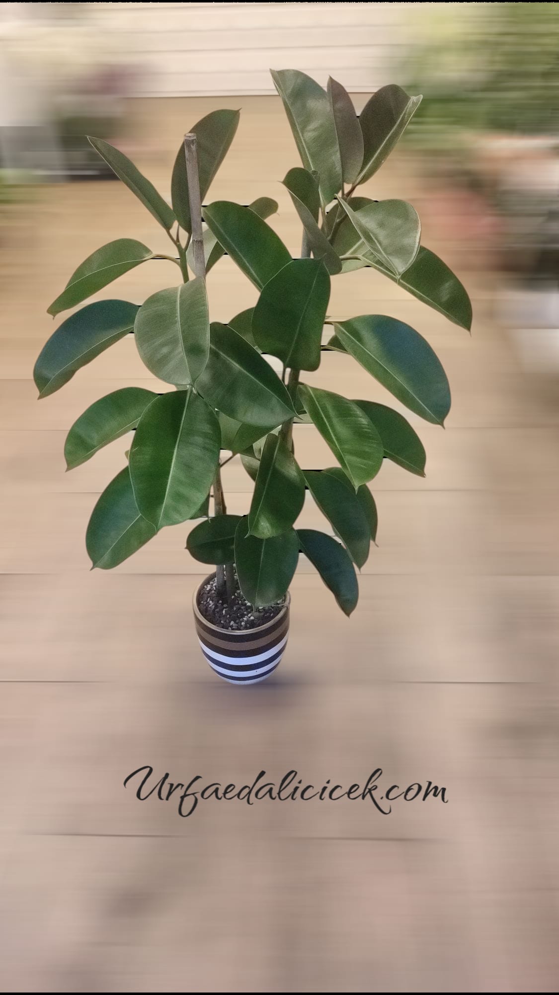 “Yeşil Duruş” ile doğanın dinginliğini evinize ya da ofisinize taşıyın. Geniş, parlak ve koyu yeşil yapraklarıyla dikkat çeken bu kauçuk bitkisi (Ficus Elastica), iç mekânlar için hem havayı temizleyen hem de dekoratif etkisi yüksek bir tercih.
